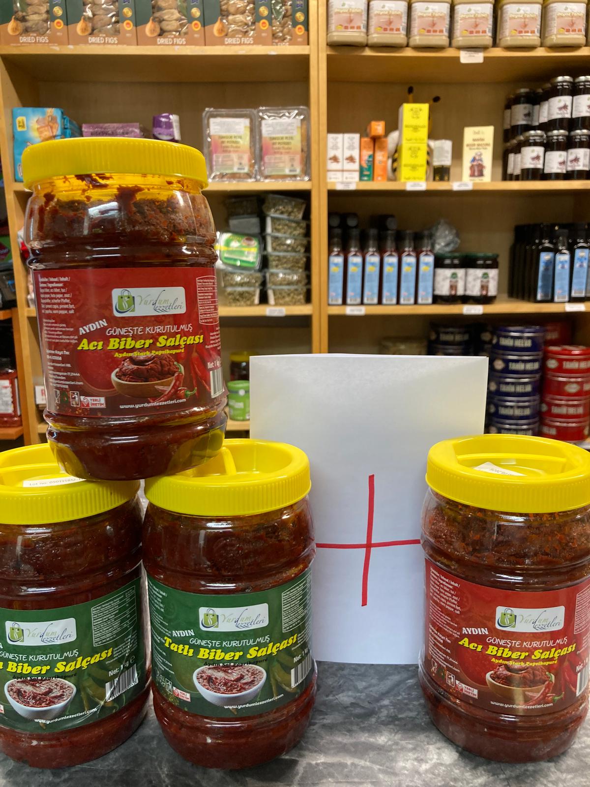 Den söta paprikapastan, som inte innehåller några tillsatser, förpackas i burkar.