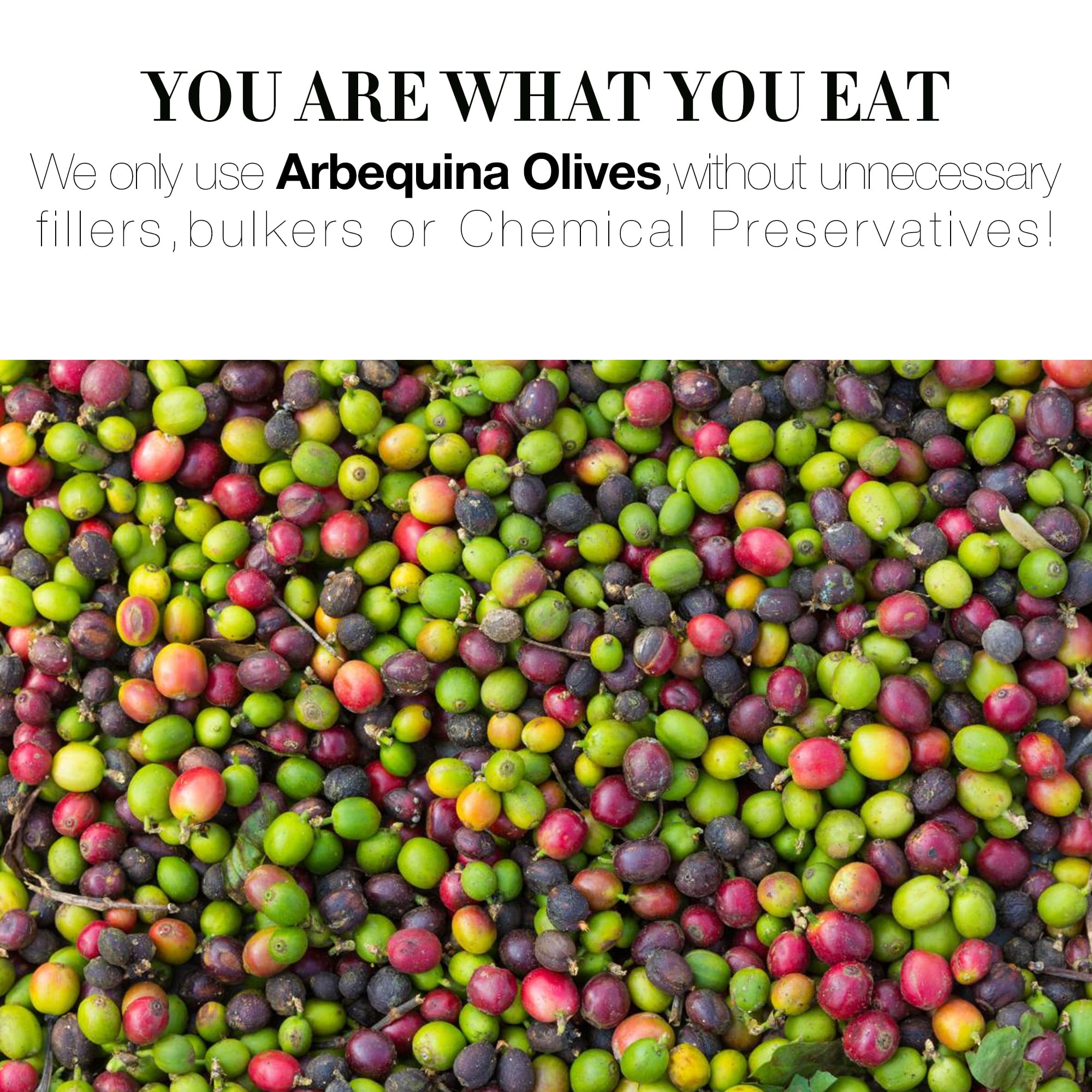 Arbequina En finkornig olivsort med ursprung i Spanien, odlas främst i Katalonien. Den producerar en mycket lätt, fruktig, söt och lågsyrad olivolja.